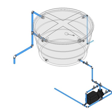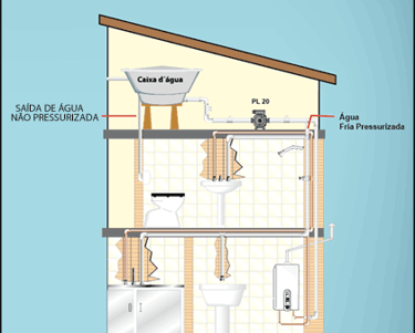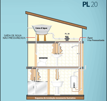 Ela puxa a água do encanamento pelo lado de sucção e a empurra para o chuveiro pelo lado de impulsão.